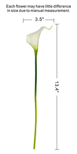 PERFECT SIZE: Total height of this artificial calla lily is 13.4inch/34cm high approx, head height is about 3.3inch/8cm, head across is about 3.5inch/8.9cm. Please allow little difference in size due to manual measurement.