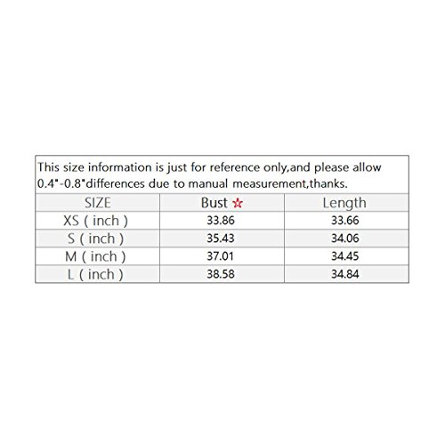 Bust(inch): XS:34.6, S:36.2, M:37.8, L:39.4