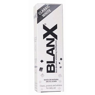 Say it all with a smile Since time began, our smile has been the expression of our personality, our feelings, a tool for flirting and has been a true calling card in our everyday relationships. The first whitening toothpaste to be based on ingredients derived from natural Arctic Lichen. Its non-abrasive formula cleans deeply and gently without damaging enamel, killing bacteria and plaque and protecting the teeth. All the benefits of BlanX Advanced Whitening in a tube. Features Contains Non-Abrasive Silica & Icelandic Lichen Deep and gentle cleaning Anti-bacterial Anti-plaque We all know oral hygiene is extremely important when it comes to keeping your smile looking beautiful and healthy. In addition to your six monthly check up it is important to eat a varied diet, of the right foods, not forgetting good sources of calcium such as milk and cheese, fruit and vegetables rich in vitaminsFeature