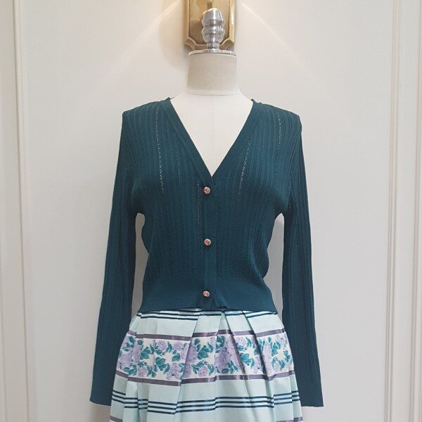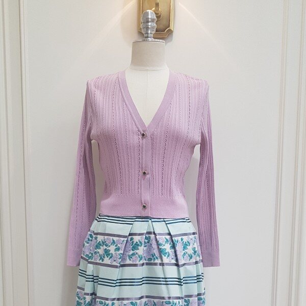 중간중간에 짜임변화로 포인트는 준 골조직 소재로 제작한 숏가디건입니다.