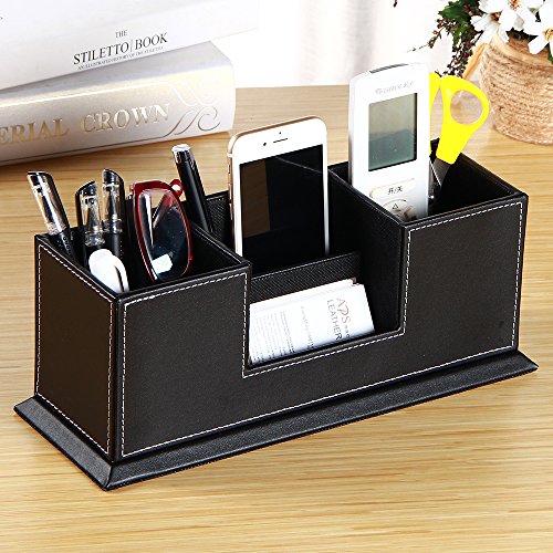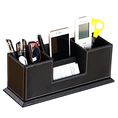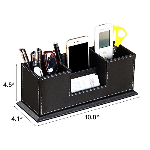 - 【Design】 4 divided compartments to organize all your office supplies, pen/pencil, scissors, remote control , cell phone and cards or other small supplies.