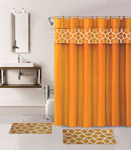 -. Feature : 15 PCS BATH MAT SET INCLUDES: 1 BATH MAT 17"X 28" 1 CONTOUR MAT 17"X 17" 1 FABRIC SHOWER CURTAIN 70"X 70" 12 FABRIC COVERED RINGS / ANTI-SLIP RUBBER BACKING MACHINE WASHABLE / 15 Piece Bathroom Accessory Set RUGS MATS SHOWER CURTAIN / BRIGHT COLOR STANDS OUT SHINES YOUR BATHROOM / THOSE BATHROOM SETS ARE GREAT QUALITY FULLY HEMMED ( PLEASE CHECK OUR AMAZON STORE FRONT FOR MORE COLORS AND PRODUCTS)