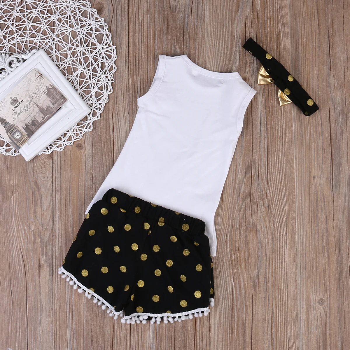 100% Brand New and high quality Adorable Kids Girls Outfits Set Fashion design Cute Size:70 80 90 100 Color :As the picture show Material : Cotton Blend Package Icluded: 1x Tops & 1x Pants & 1x Headband (3pcs set) Size Chart: Attention plz: If your kid is chubby」ャ we recomend choosing a larger size」ャ thanks.