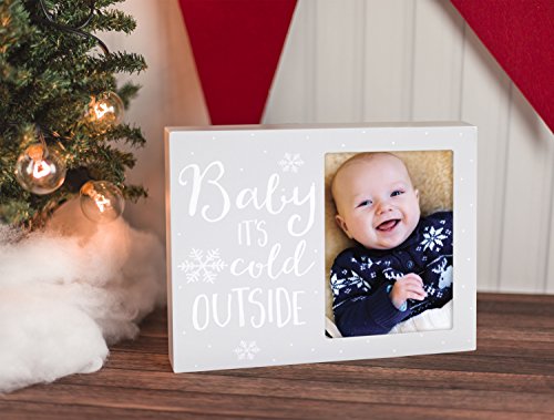 ReleaseDate : 2017-03-31 Studio : Pearhead Publisher : Pearhead Binding : Baby Product Product Description Baby it's cold outside, so stay warm inside and admire Pearhead's Holiday Photo Plaque. This decorative holiday photo plaque is the perfect holiday plaque to cherish the winter months. Hand finished, gray plaque includes area to display an adorable 4" x 6" picture of your little one. "Baby it's cold outside, is printed in decorative white script to add a special pop of fun. The holiday photo plaque makes a perfect gift for any loved one or friend and is sure to become a treasured holiday decoration. Festive holiday photo plaque can be displayed on any table or shelf and also includes hanger for easy wall mount. Photo plaque measures 7.5"W x 6"H x 1.25" in depth.