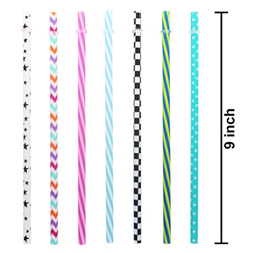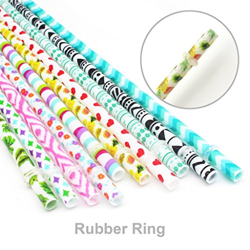 Specifications: Pattern: Spots,spirals,flowers,stars,pineapple etc. Color:Assorted color Size: 9.0 inches in length and 0.3 inches in diameter Quantity: 30 pieces(Rubber rings for all straws) 1 cleaning brush 0