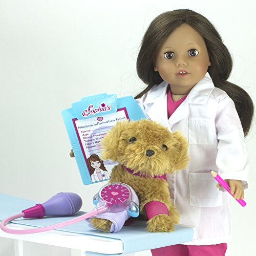-. Feature : 18" Doll Medical Kit, Pretend Play Set Medical Kit sized for the child's hands for play with dolls and plush, play set / This Incredible Doll Sized Set is a Perfect Pretend Play Medical Kit for your Favorite 18 Inch Doll and stuffed animals / Perfectly Sized for American Girl Dolls, Madame Alexander, Our Generation & Sophia's dolls / Each Medical Kit is hand detailed with a stethoscope, blood pressure cuff, otoscope, syringe, thermometer, bandage, clipboard, pencil, chart, all inside a medical bag / © 2015 Sophia's- All Rights Reserved. Not affiliated with American Girl®, Reg. Trademark of American Girl, LLC.