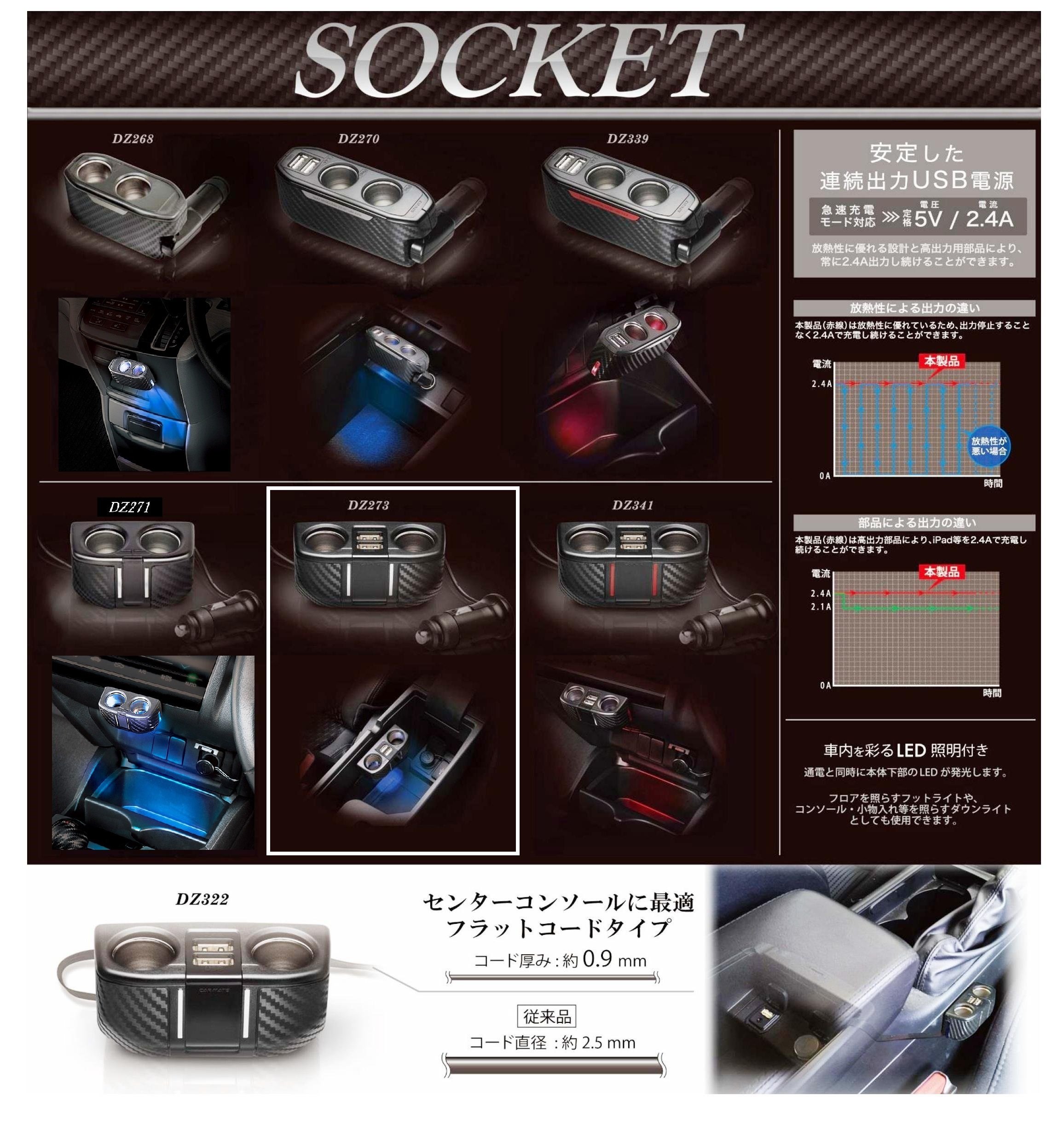 Carmate (CARMATE) with socket 2 consecutive code 2-neck USB 2.4A carbon style DZ273