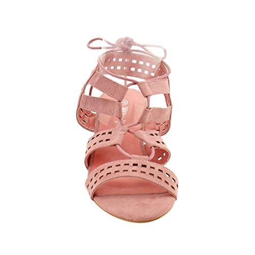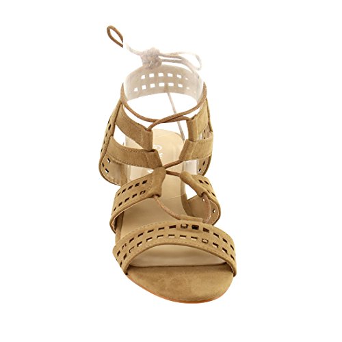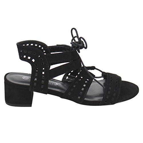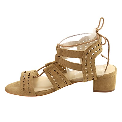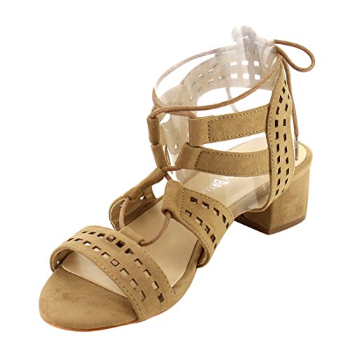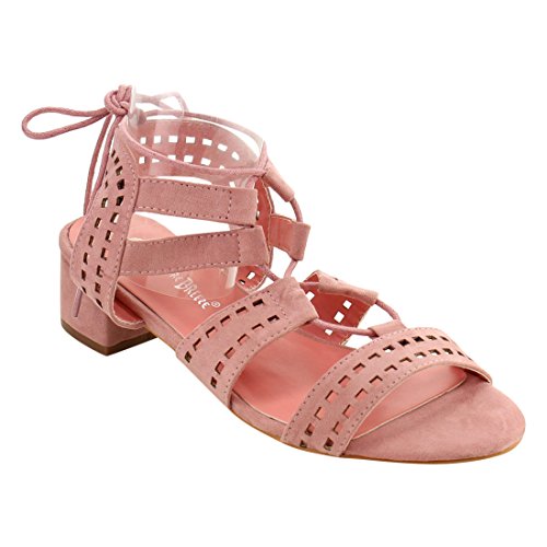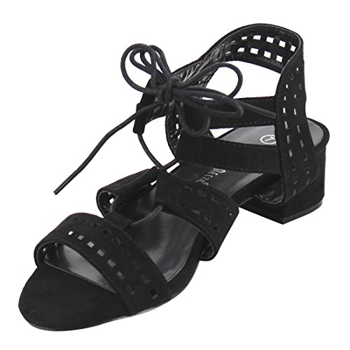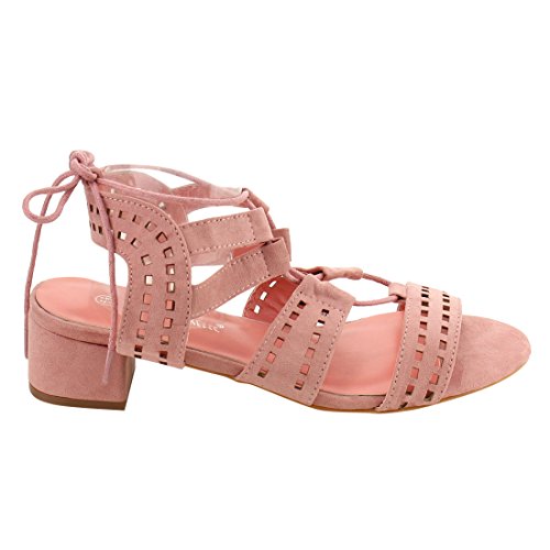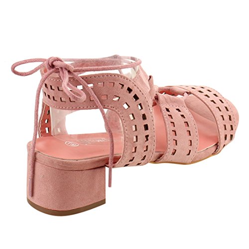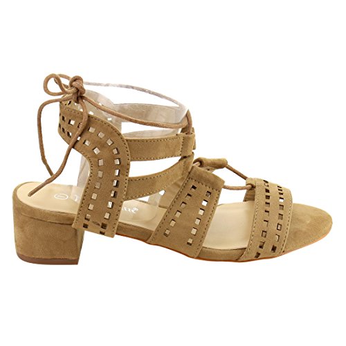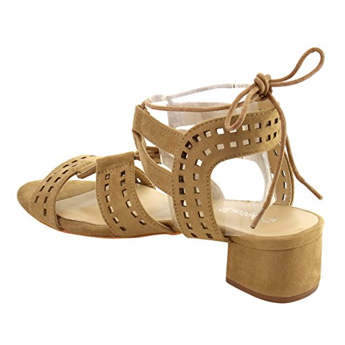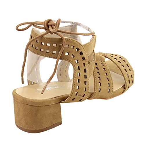 Nature Breeze FH18 Women's Lace Up Gladiator Cut Out Block Heel Sandals