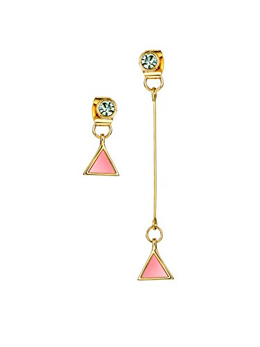 -. Title : (ネオグロリー)Neoglory Jewelry 夏にピッタリ爽やかなマカロンカラー キュービックジルコニア ロングピアス 左右違うデザイン アメリカン スタッドピアス「ピンク三角形」