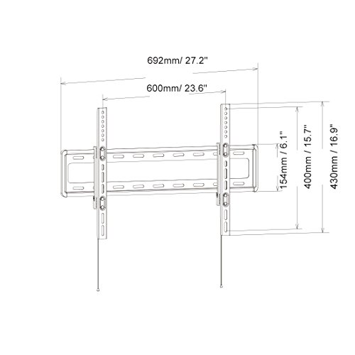 [Description] Don``t take us lightly_ our heavy-gauge TV mount holds 32`` - 70`` TVs weighing up to 88lbs. Don``t worry_ we``ll do the heavy lifting: Each and every Loctek mount is tested to hold more than 4 times the weight it``s rated to - Safety Tested - UL Certified Material:High Quality Cold Rolled Steel Overall Dimension: 27.17`` * 16.93`` * 2.0``(692*430*50mm) VESA: 600*400_600*300_600*200_600*100_500*400_500*300_500*200_500*100_400*400_400*300_400*200_400*100_300*400_300*300,300*100 Mounting has never been so easy: 30 minutes to install on 12``/ 16``/ 20``/ 24`` studs_ with all hardware included and pre-divided.