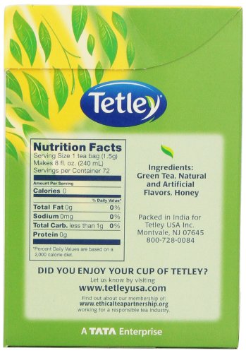 -. Title : Tetley Green Tea, Honey, 72 Tea Bags
