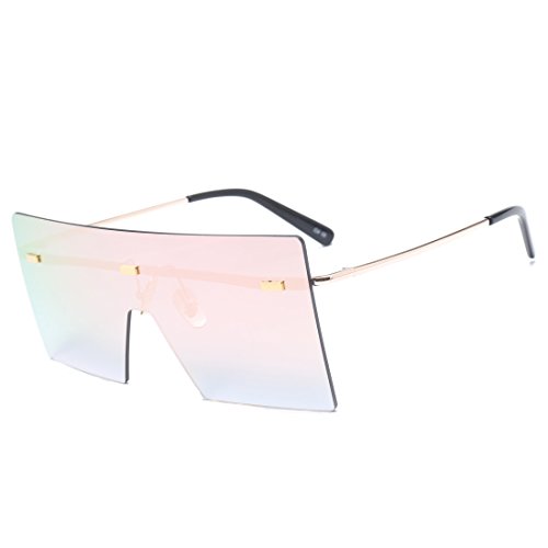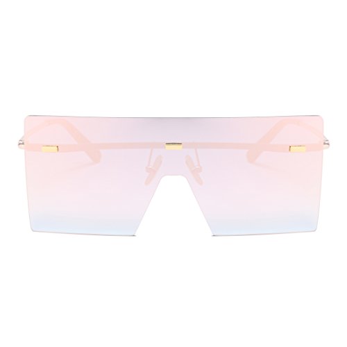 SIKYGEUM Vintange Oversized Rimless Sqaure Sunglasses Women Men Flat Top Mirrored