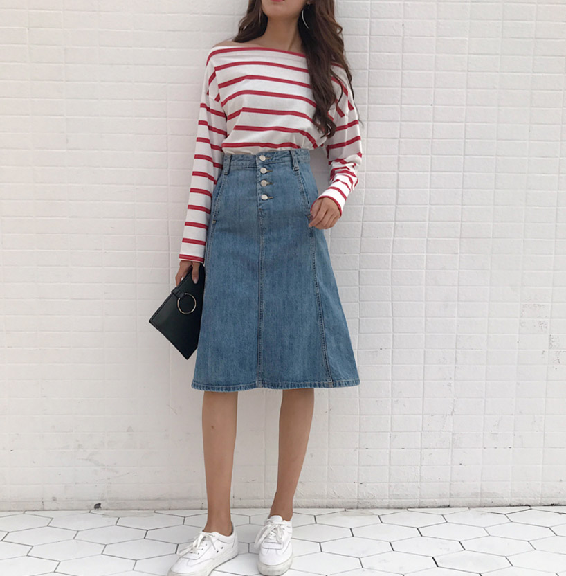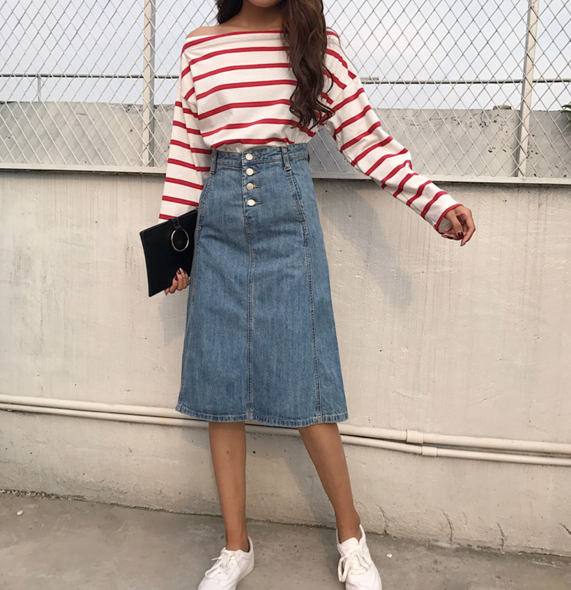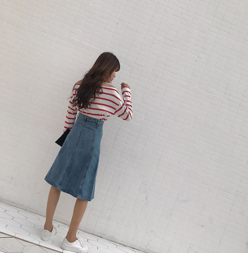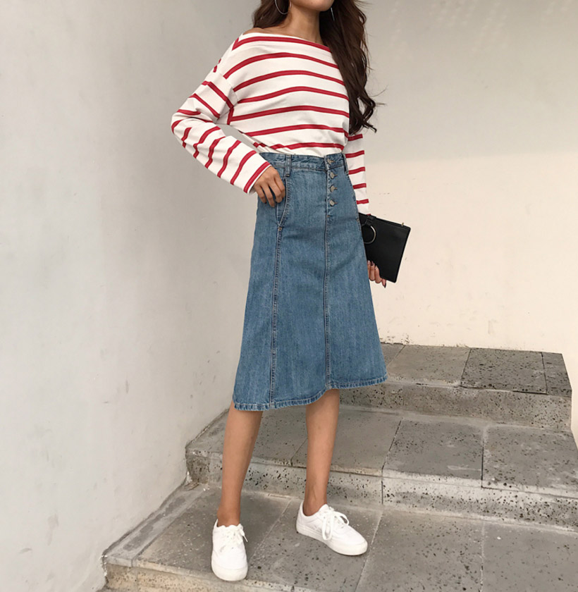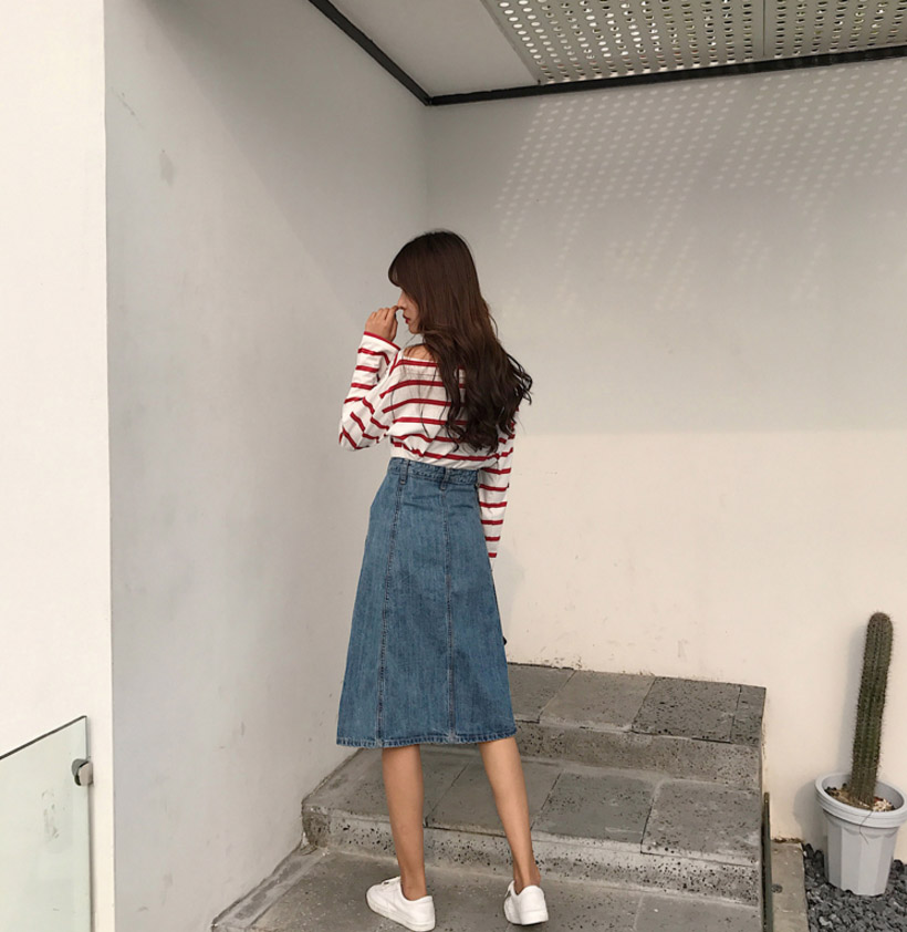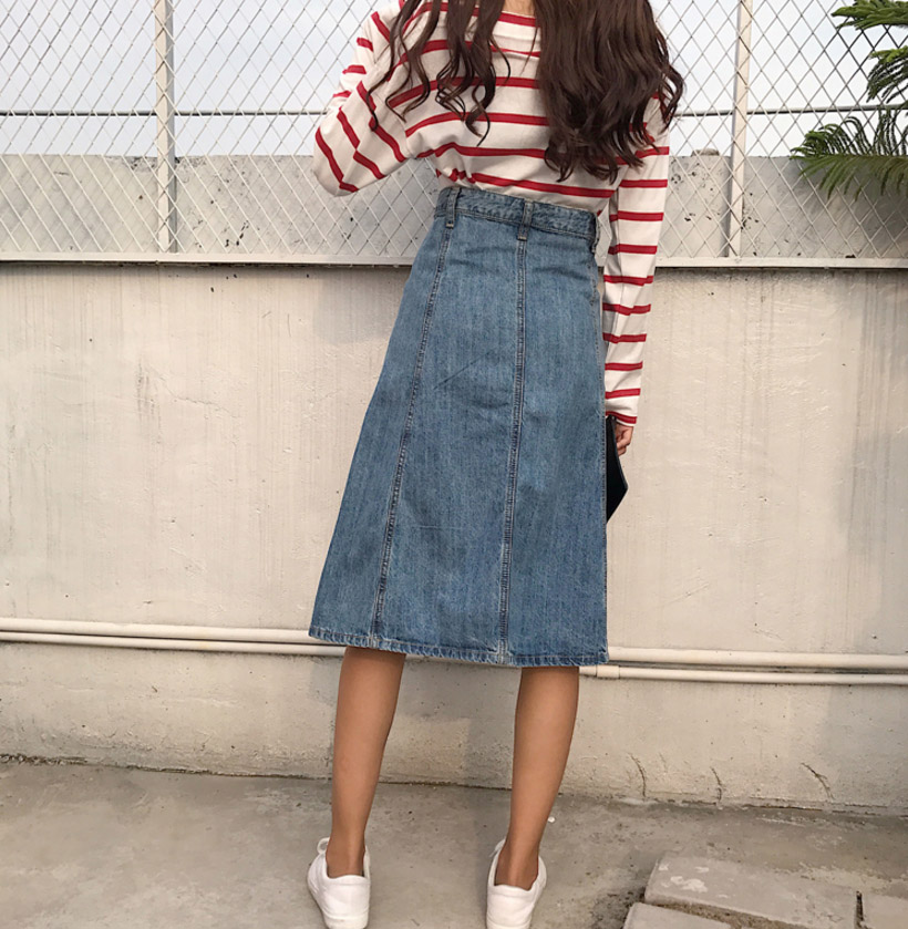 High-waisted denim long skirts A-line Cowhide autumn colors