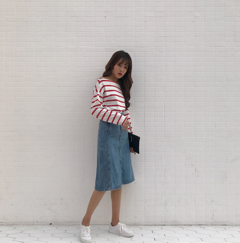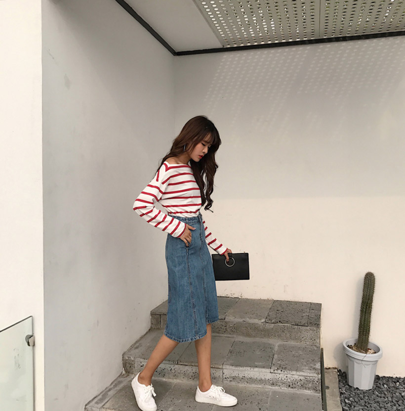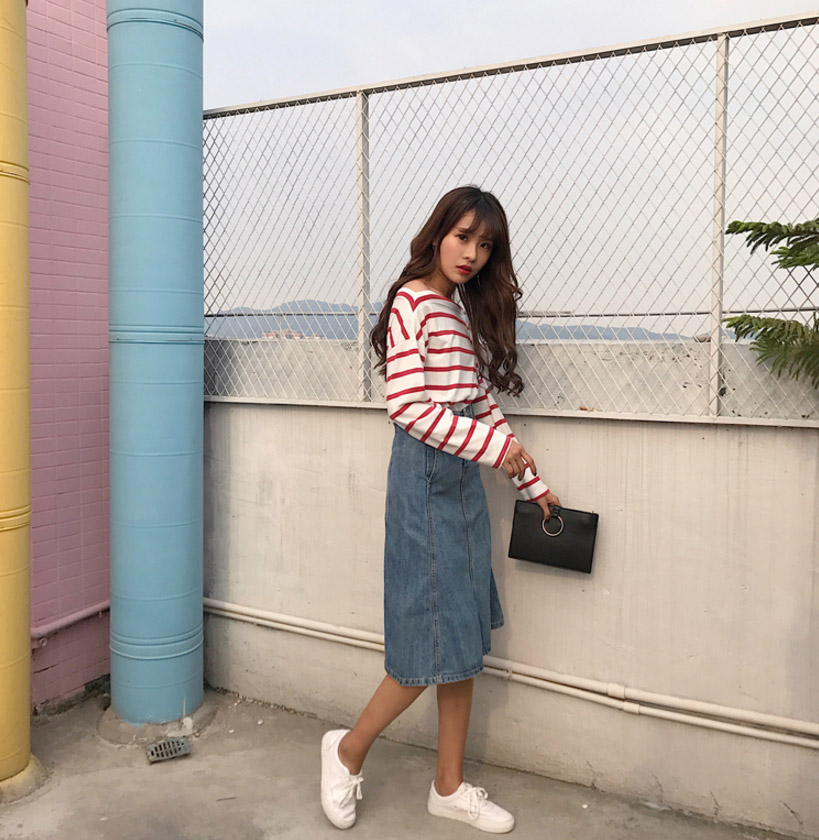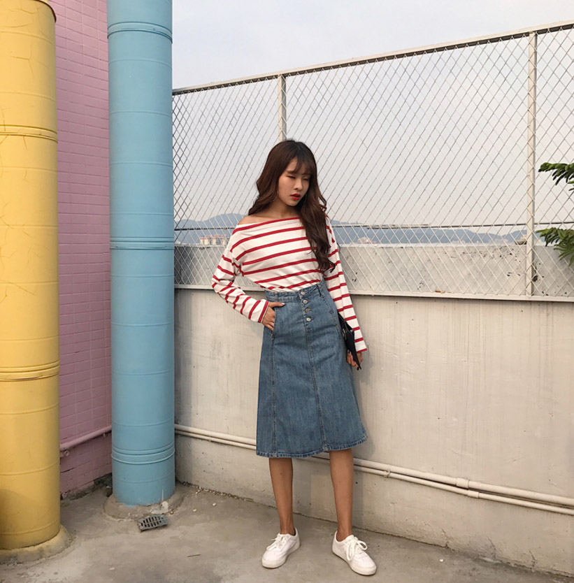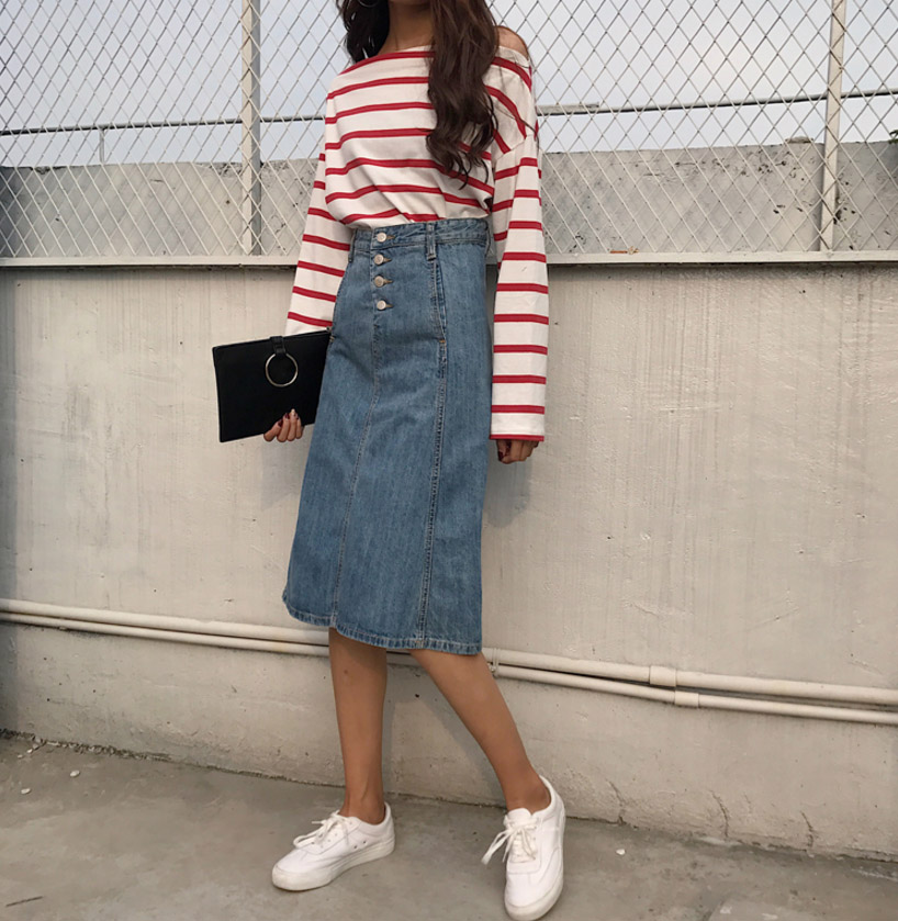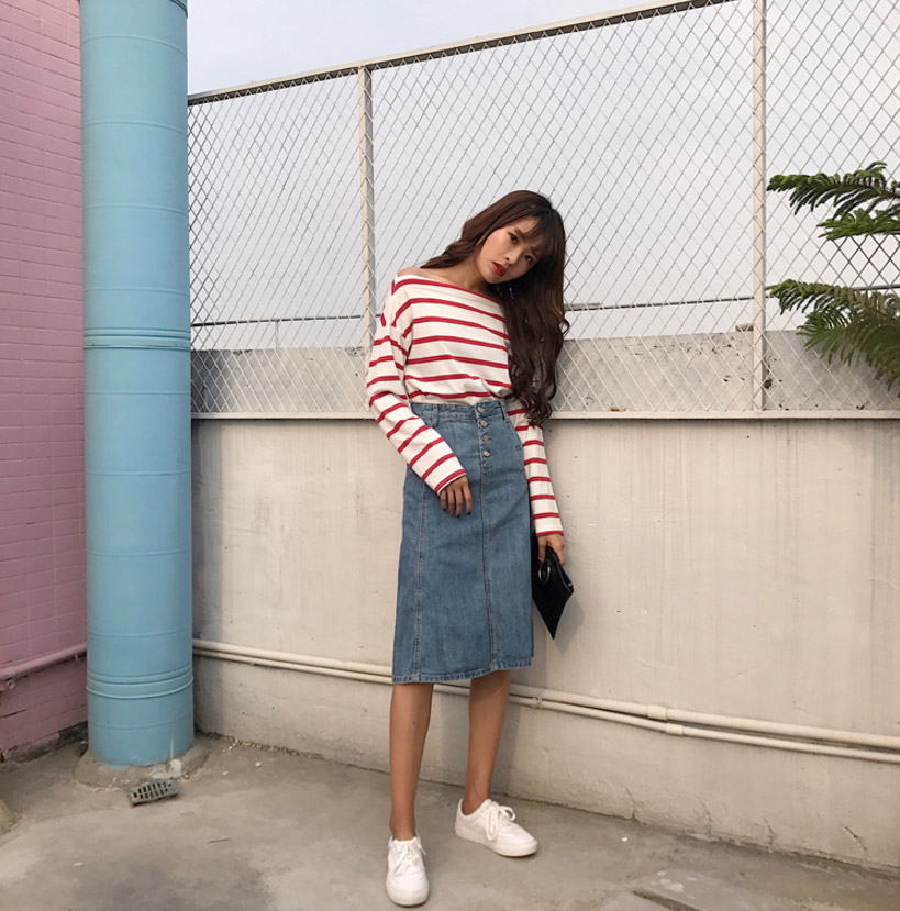 High-waisted denim long skirts A-line Cowhide autumn colors