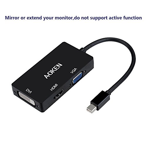 This Gold-Plated Mini DisplayPort to HDMI/DVI/VGA adapter is an indispensable companion for your Mac, PC, and tablet equipped with Mini DisplayPort. Connect your laptop or tablet to an HDTV for HD video (1080p) and audio streaming or to an HD monitor/projector with this adapter and an HDMI/DVI/VGA cable (NOT INCUDLED IN PACK). .That is say this 3 in1 adapter donot support active your monitor with three different display, only support connect and configure your monitor for an Extended Desktop or Mirrored Displays with the same display. Connection Notes 1.Input: Mini DisplayPort / ThunderboltTM Port Male 2. Output: HDMI Female, DVI Female, VGA Female; 3. Can only convert signal from Mini DisplayPort to HDMI/DVI/VGA. 4.Macs made before 2010 do not output audio over Mini DisplayPort