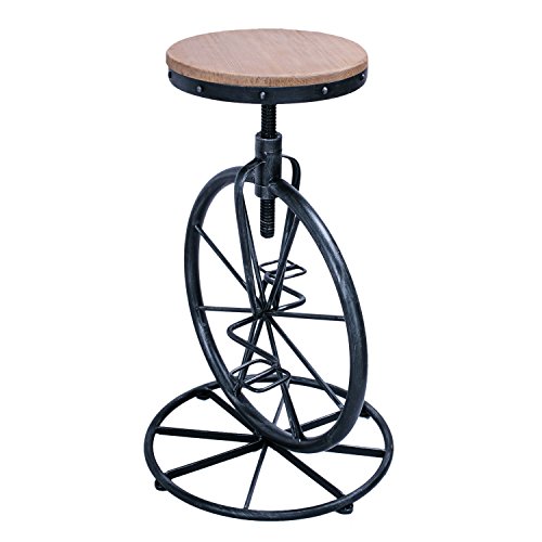 -. Title : Joveco Metal Bar Stool Barstool Adjustable Height with Wooden Top, Unique Retro Vintage Antique style