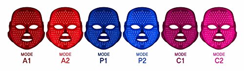 Mode A. DEESSE Home Care System RED - 630nm(Red) 830nm(IR) : Tightening, uniform skin tone Mode P. DEESSE Home Care System BLUE - 415nm(Blue) 830nm(IR) : Sensitive skin concerns, Intensive Care Mode C. DEESSE Home Care System PUPPLE - 630nm(Red) 415nm(Blue) 830nm(IR) : Skin hydration enhancement, multi-Care