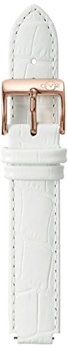 -. Feature : Rose gold ion-plated stainless steel watch featuring diamond-studded bezel with black Roman numeral hour markers on white logoed dial / Quartz movement with analog display / Protective mineral crystal dial window / Features interchangeable stainless steel link bracelet and white leather strap / Water-resistant to 30 m (99 ft)