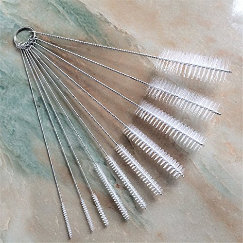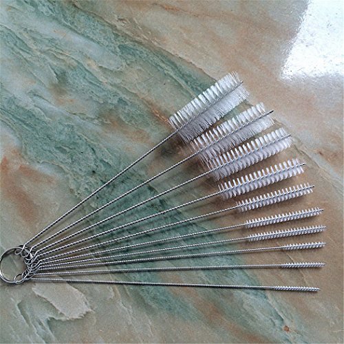 -. Feature : APPROP.R.IATE HARDNESS: The brushes come with a detachable key ring and approP.R.Iate hardness. / MEET TO ALL KINDS OF BLIND ANGLE CLEANING: The brush set has 10 pieces nylon tube brushes, different diameters from 1/16 in to 1 in, you can always find a fit tool when cleaning gaps, dead angle places. / Don't worry about scratch your items when cleaning any more, such as glasses, jewelry, cell phones, etc. / FEATURE: Package included 10 brushes comes with a detachable key ring for quick and easy access. All brushes are 8 inches long. Size from 2 mm to 24 mm (1/16 in to 1 in). / Perfect for hard-to-reach spaces cleaing, such as Airbrushes, small Bottles, Cell Phones, Colanders, Drinking Straws, Drip Tips, Espresso Machines, Eye Glasses, etc.