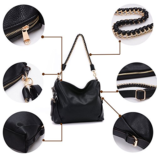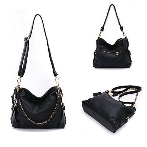 [Description] Material: High Quality PU Leather and Metals. Size:13.8*3.5*11.8(L*W*H) Closure Type: Top Zipper. With one long adjustable shoulder strap_ one helical chain shoulder strap_ one Removable portable tape_one decoration. Internal:The deep main compartment is big enough to hold your Ipad air2 _notebook_ and it is capable of storing all essential accessories like Lipstick_Perfume_ sunglasses_etc It``s spacious and casual and cool.Back zip wall pocket for easy access_which can hold your keys_cellphone_cash. Spacious fully lined fabric compartment. Occasion:Dating_Working Place_Shopping_Traveling.Elegant urban style__3 Carry Ways perfect for using in office_ school_ travel or any other daily occasions.