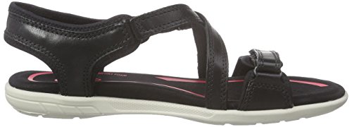 Casual sandal featuring crisscross instep straps and multiple adjustable hook-and-loop closures