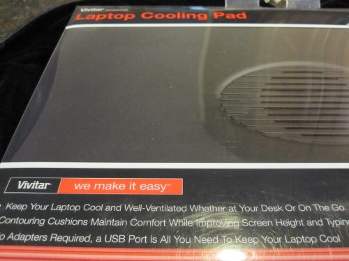 -. Binding : Electronics -. Brand : Vivitar -. Color : black -. EAN : 0681066799208 -. Feature : Vivitar helps prevent Overheating of your valuable equipment by adding a cushioned layer of airflow between laptop and your lap / Special contoured design Maximizes airflow between the the base of your laptop and the cooling station providing essential airflow needed for cooling particularly during extended periods of use / Ergonomic designs elevates your device and increases viewing angle / Powers from your USB Port Windows or Mac and requires no other batteries to operate -. Label : Vivitar -. Manufacturer : Vivitar -. Model : VCP1 -. MPN : VCP1 -. PackageQuantity : 1 -. PartNumber : VCP1 -. ProductGroup : PC Accessory -. ProductTypeName : COMPUTER_ADD_ON -. Publisher : Vivitar -. Studio : Vivitar -. Title : Vivitar Laptop Cooling Pad USB Powered to 17" -. UPC : 681066799208