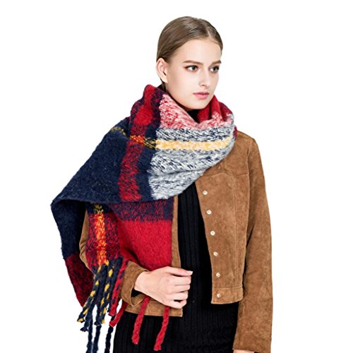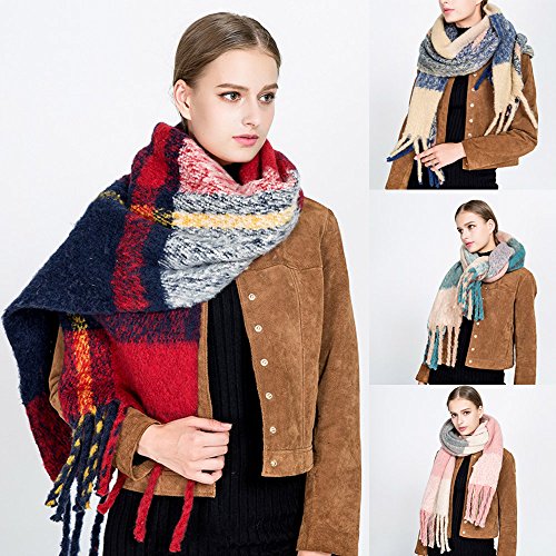 | (Qisc)/Accessories/Scarves/DIRECT FROM USA/Qisc Ladies Tassels Scarf, Winter Warm Tartan Scarf Wrap Shawl Plaid Long Checked Pashmina Oversized |