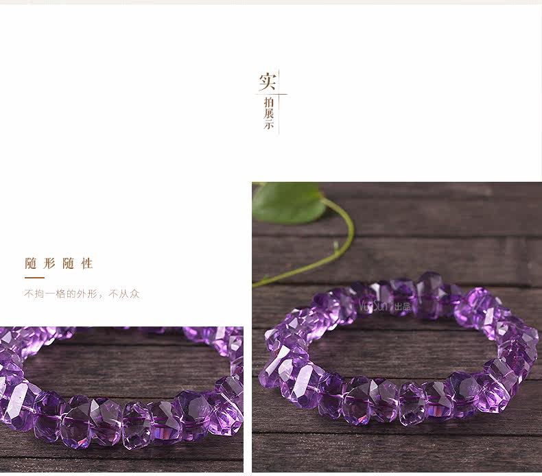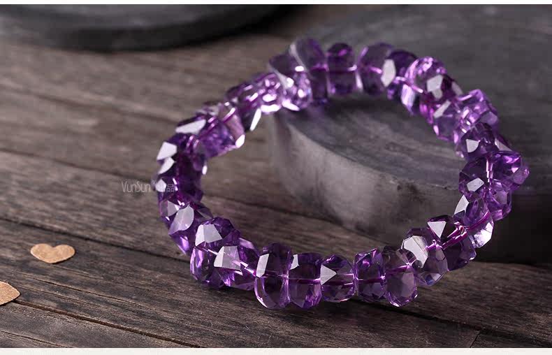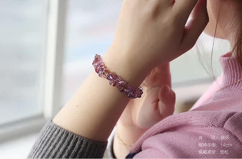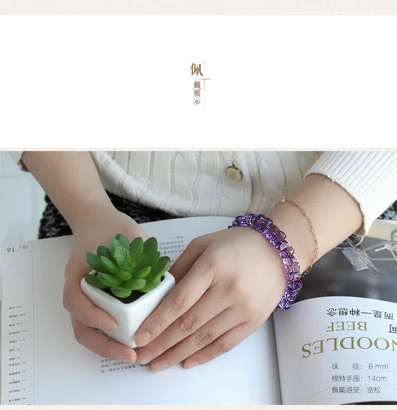 天然紫水晶手链女韩版单圈不规则切面紫晶手串简约饰品礼物