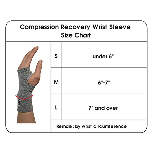 -. Feature : Professional design -- Provides mild compression for warmth and helps increase circulation, which can relieve wrist pain, carpal tunnel and wrist tendonitis to stimulate joints, improve blood flow and provide support. / Softness Fabric-- Unlike hard wrist braces that restrict the range of motion, whether office, strenuous exercise or static activity, it will not interfere with any action. / Innovative Fiber -- Using germanium and bamboo charcoal material to make the physical activity get more energy. Moisture wicking and deodorize keeping your wrist comfortable. / Unlike The Previous Wrist Sleeve --The wrist sleeve having a cuff that is able to cover the palm area to help relieve pain, stimulate joints, improve blood flow, and provide support.