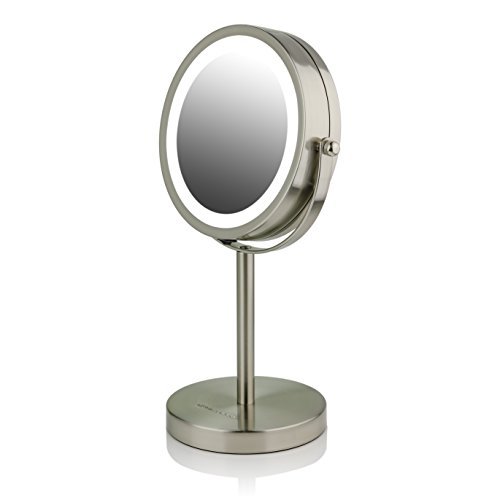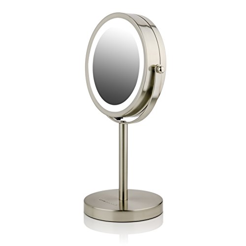 Ovente Lighted Tabletop Makeup Mirror, 6 Inch, Dual-Sided 1x/7x Magnification, Cordless, Battery Operated, Cool-Tone LED Lights, Nickel Brushed...