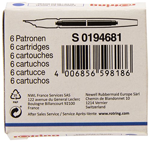 1 X 6 Ink Cartridges for Rotring Pens - Brilliant Blue