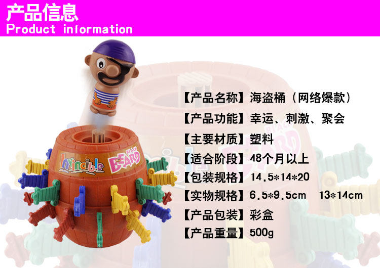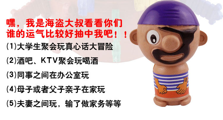 本店也推出类似款海盗桶供大家选购,您是否想要送您同学、朋友、心爱的他(她)一份创意礼物呢?KTV聚会喝酒可以玩,平时校园聚会可以玩,小朋友过家家可以玩,一款精美绝伦的工艺品、摆饰品,多功能集一身的国庆节礼物,只为给他(她)一个不一样的愚人节,您还等什么呢?赶紧下单吧