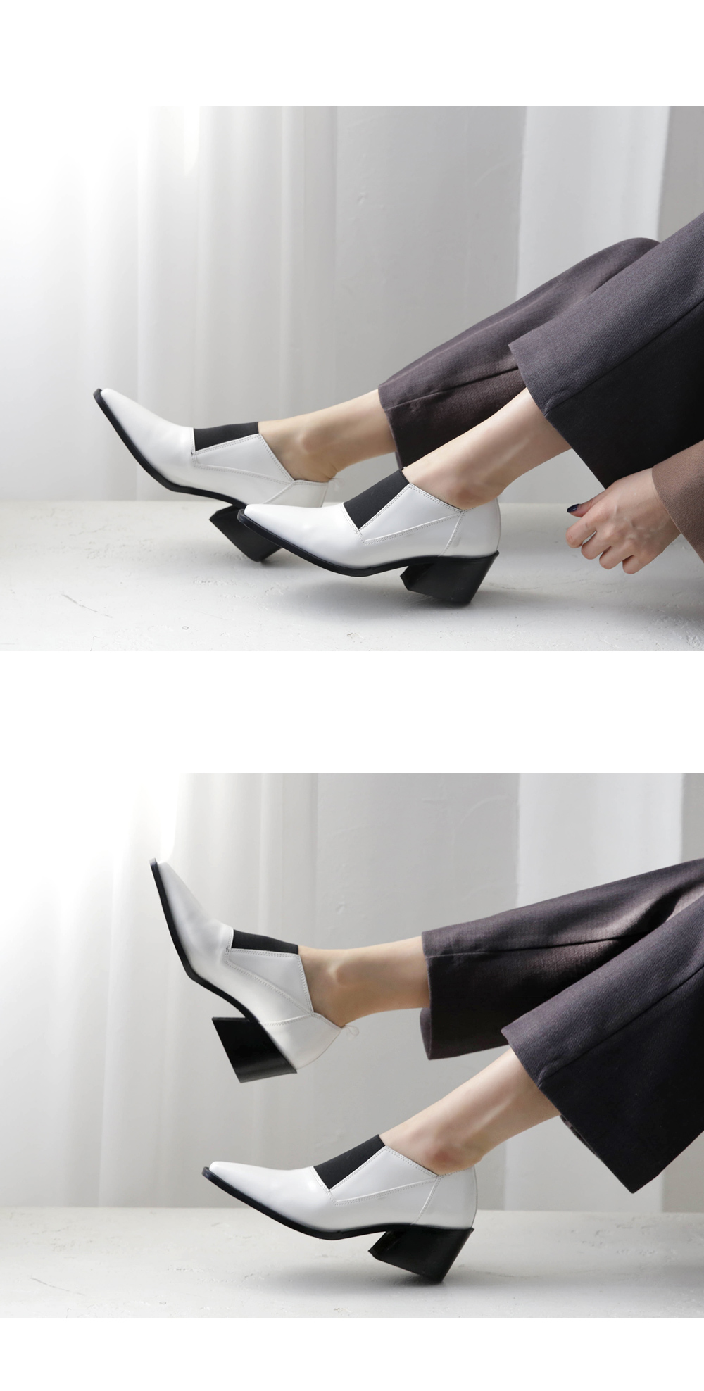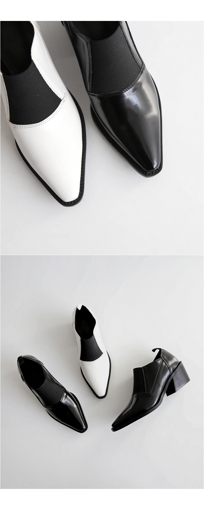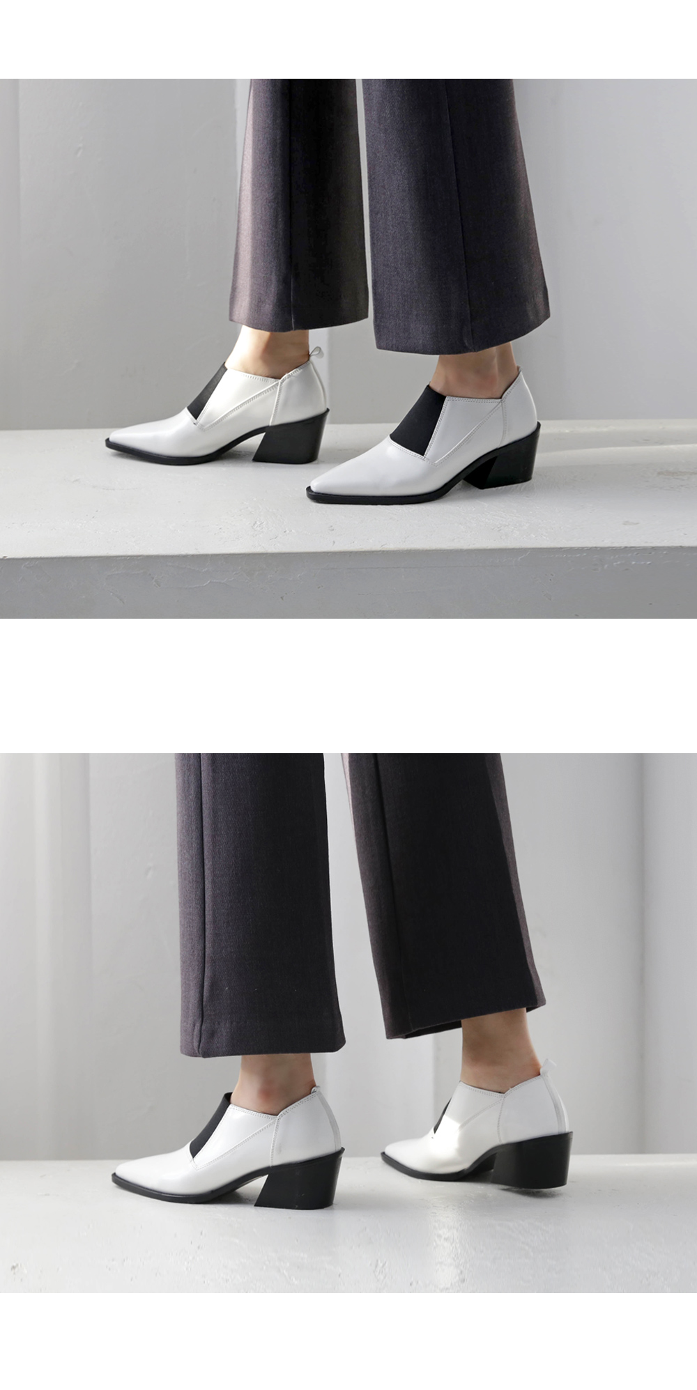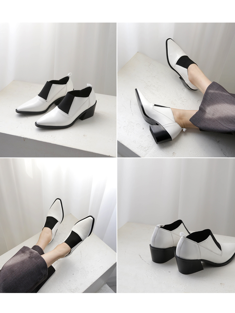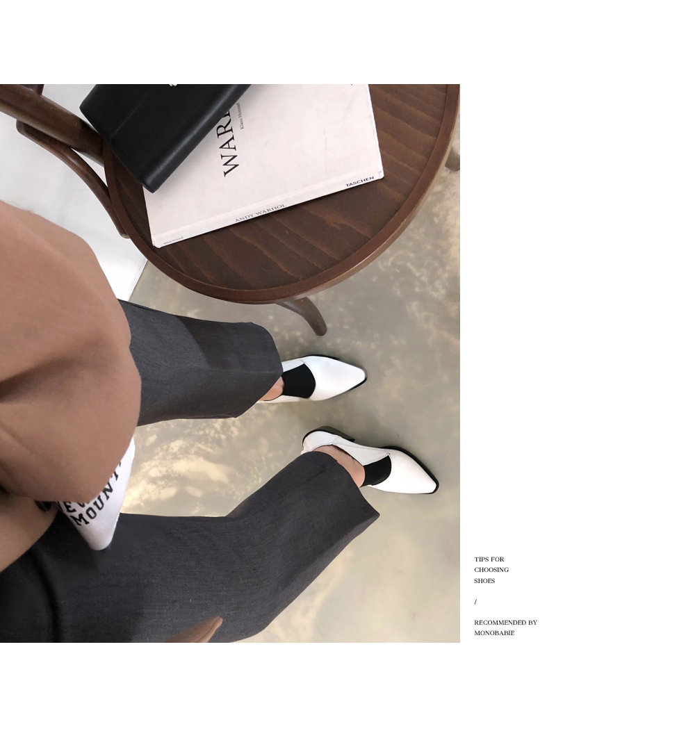 DETAILS - 소재 : 인조소가죽 - 컬러 : white,black - 피팅감 : 정사이즈 / 무게 : 보통인편 - 착화감 : 발등스트랩 밴딩으로 편안해요 - 모델피팅 : 230