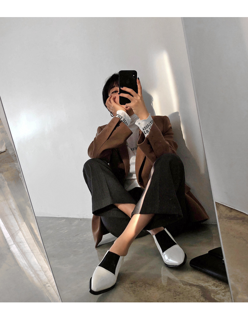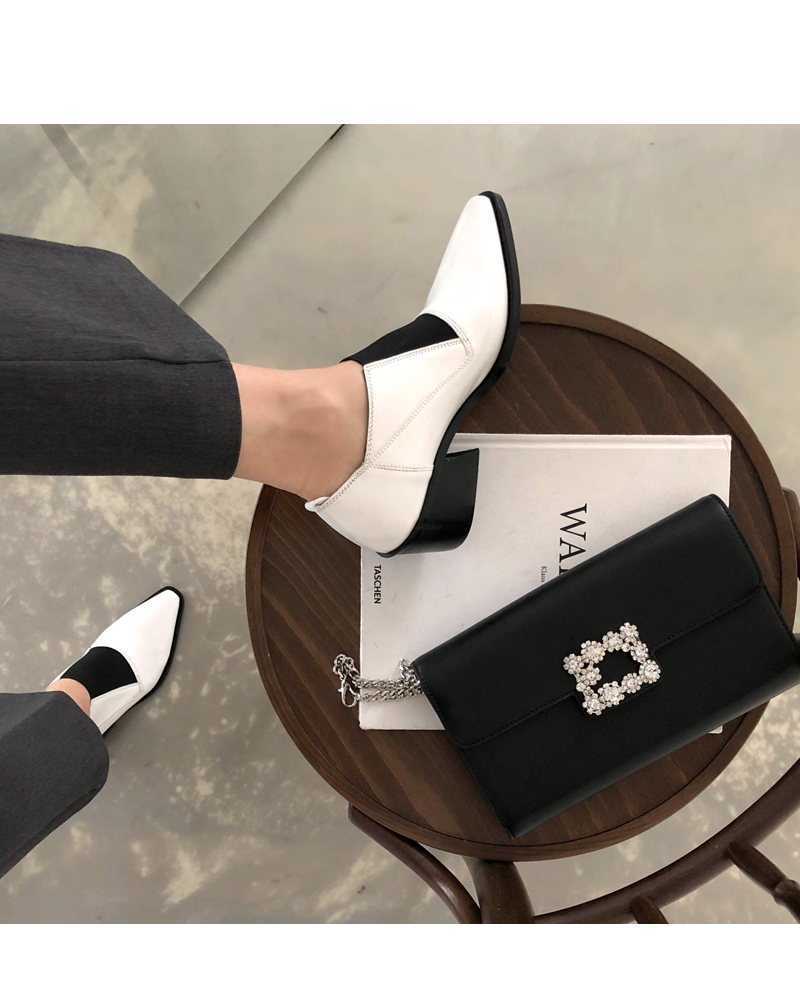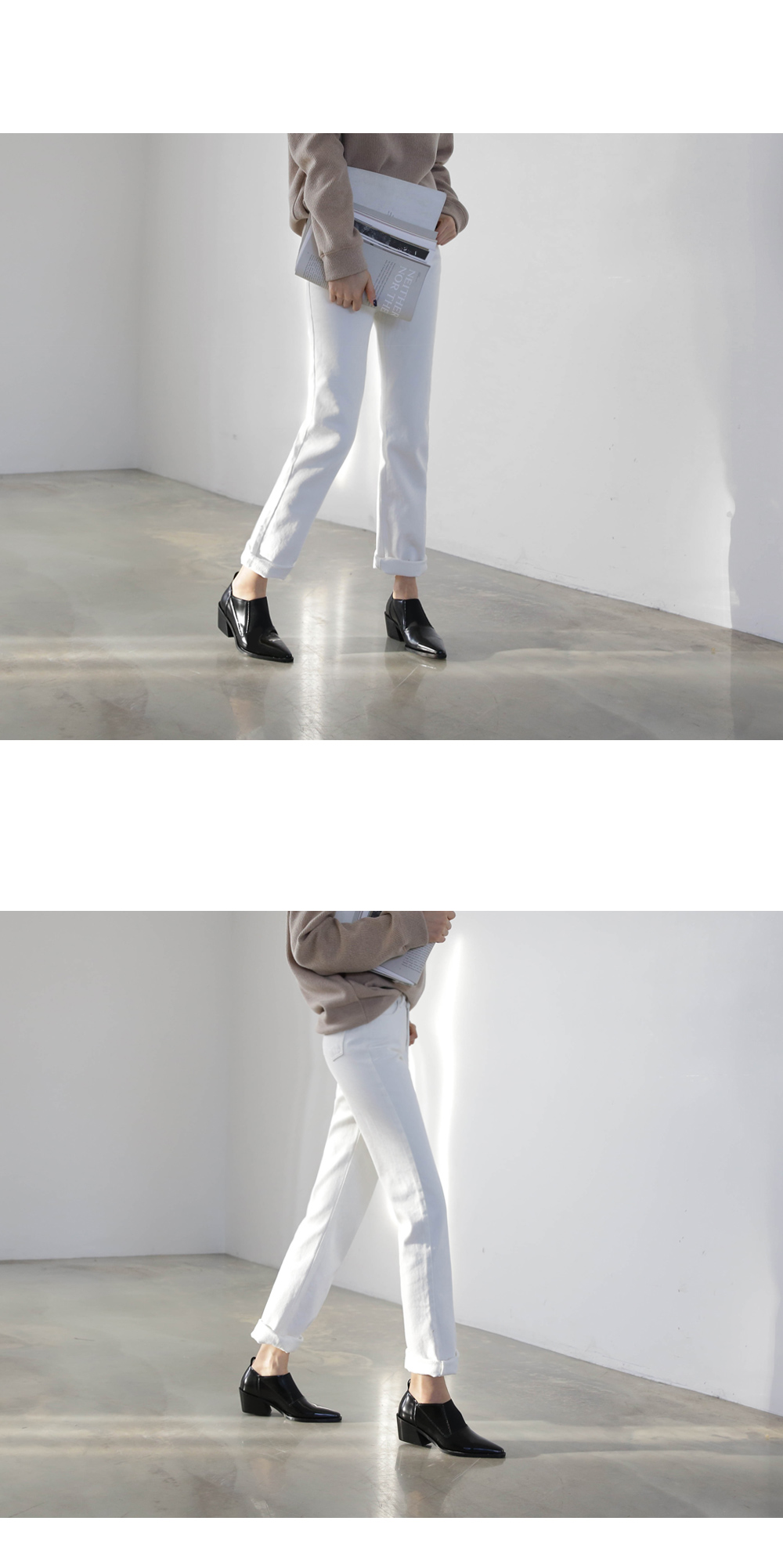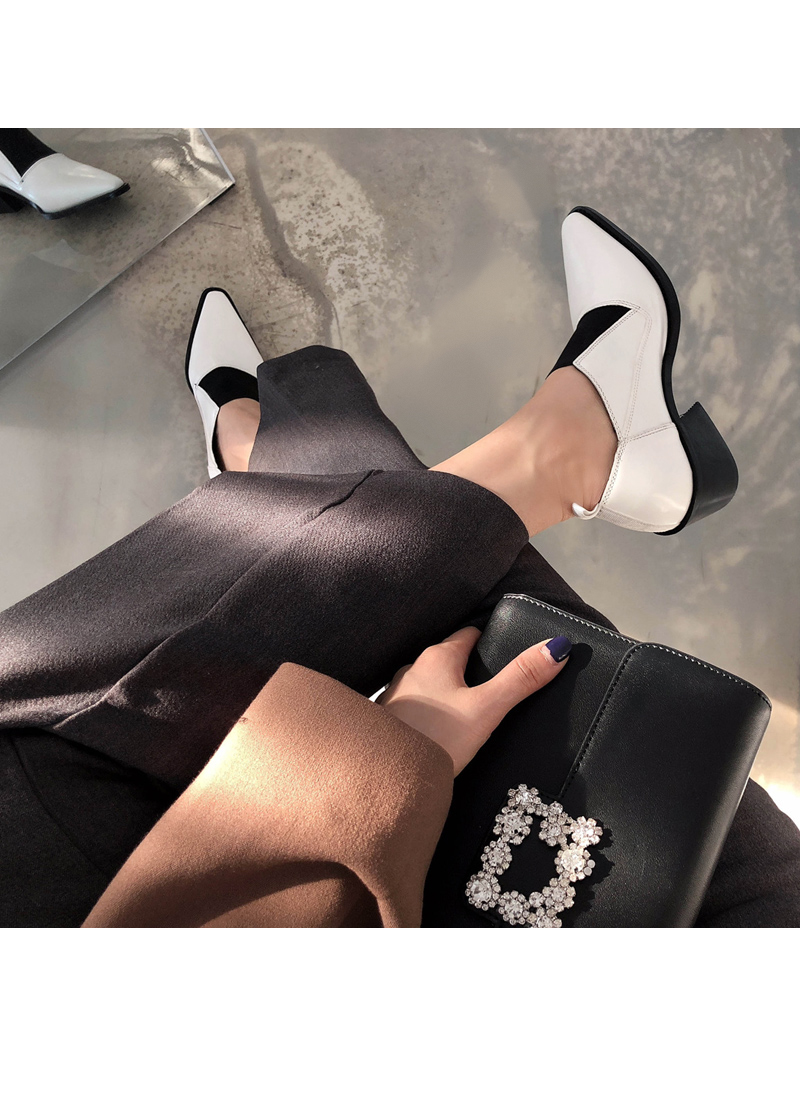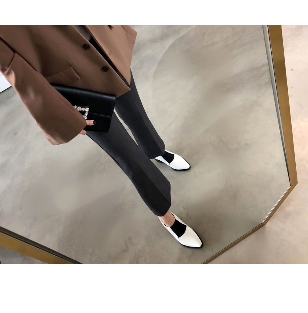 DETAILS - 소재 : 인조소가죽 - 컬러 : white,black - 피팅감 : 정사이즈 / 무게 : 보통인편 - 착화감 : 발등스트랩 밴딩으로 편안해요 - 모델피팅 : 230