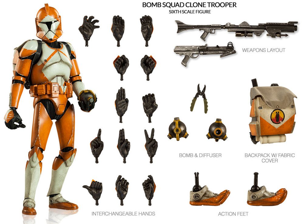 A figure that is about 30 centimeters in height and moves more than 30 places is maximizing the charm of Bom Squad Trooper, a specialist in bomb disposal that appears in the CG animation work "Clone Wars".