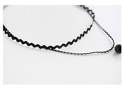 -. Title : TICENTRAL アンティーク風 レディースファッション レース ネックレス 2連 波 波状式 パール 可愛い チョーカー チェーン アクセサリー ブラック 黒