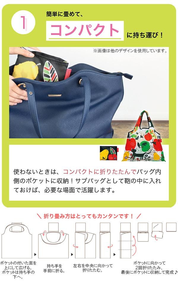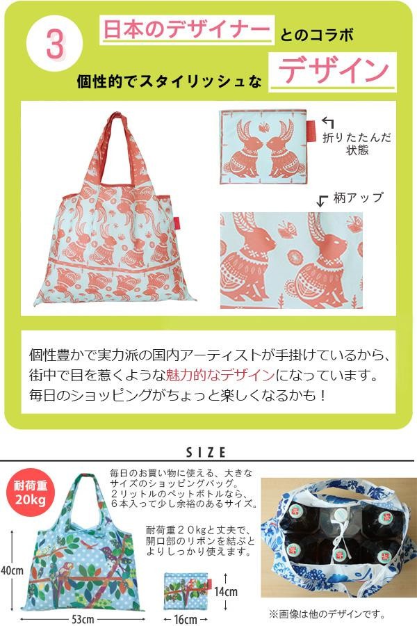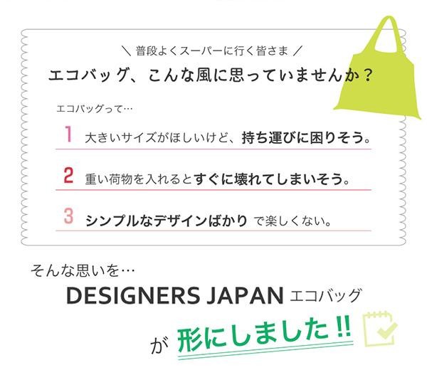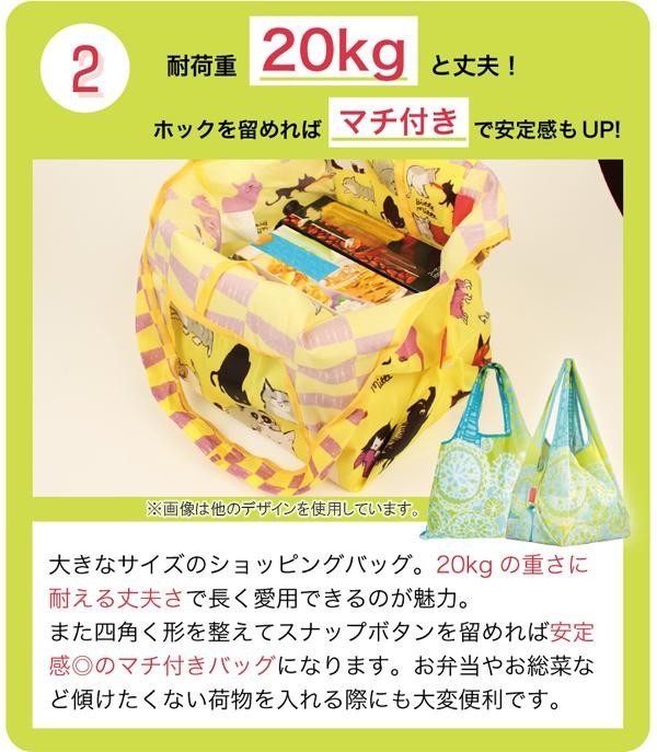 | 使わないときは折りたたんで収納できる、携帯に便利なショッピングエコバッグ。たっぷり容量で耐荷重はなんと20kg!!マチ付きにもでき、安定感も◎。日本のアーティストとコラボした個性豊かなデザインのDESIGNERS JAPANシリーズです♪ |