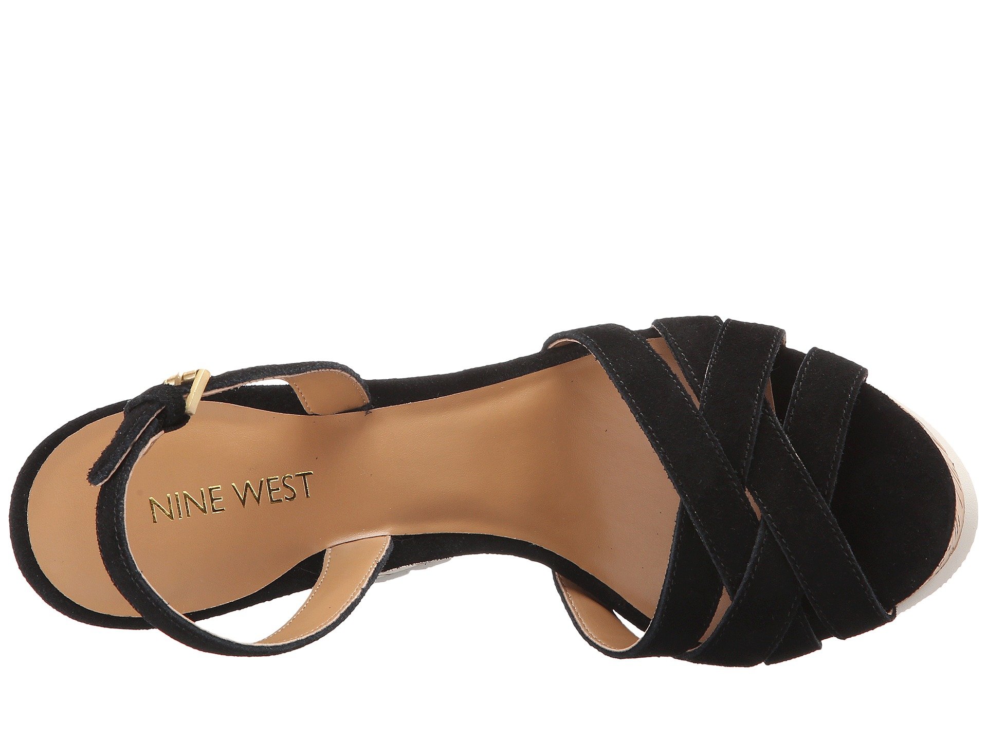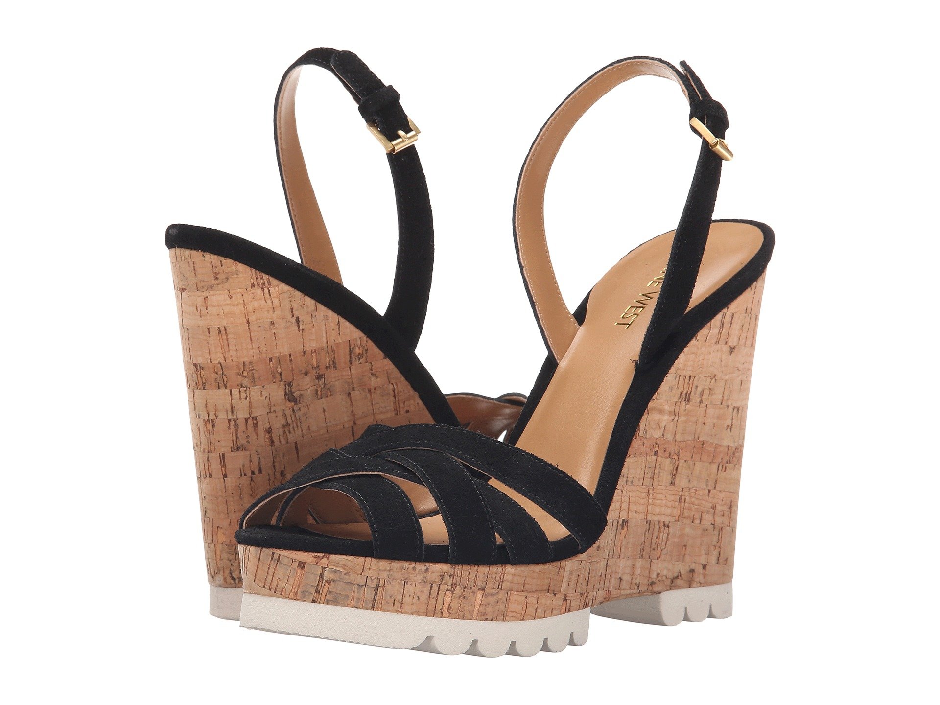 | Product Information SKU: #8679728You won't need your puppy-dog eyes when you don the adorable Nine West™ Kindeyes wedge sandals.Available in a variety of leather uppers.Ankle strap with buckle closure. Open toe.Man-made lining. Lightly-padded footbed.Cork platform and wedge heel.Rubber outsole.Imported.Product measurements were taken using size 8, width M. Please note that measurements may vary by size.Weight of footwear is based on a single item, not a pair.Measurements: Heel Height: 4 3?4 in Weight: 10 oz Platform Height: 1 1?2 in |