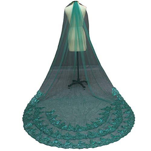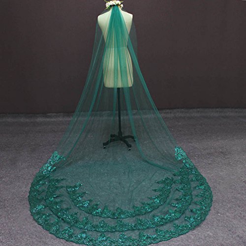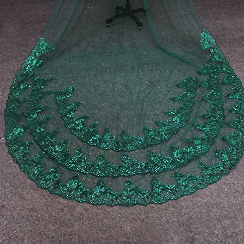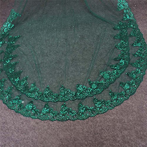(MERMAIDFUN)/Accessories/Scarves/DIRECT FROM USA/MERMAIDFUN Green Wedding Veil One Layer Sequined Lace Long Bridal Veil with Comb