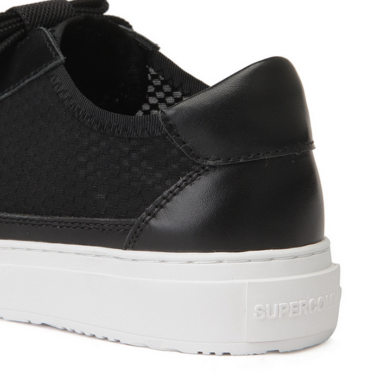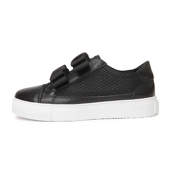 * 소재:상피재료: 천연소가죽+폴리에스터 100% 창재료: 러버* 색상:블랙- 매쉬 바탕에 리본을 적용한 여성 스니커즈.- 부분 천연 소가죽 소재로 고급스러움.- 부분 로고 디테일로 브랜드의 감각을 연출함.- 다양한 착장에 포인트 아이템으로 연출이 가능.* 판매원: 코오롱인더스트리(주)FnC부문* 원산지: 중국| 소재정보: 상피재료: 천연소가죽+폴리에스터 100% 창재료: 러버 | 사이즈정보: