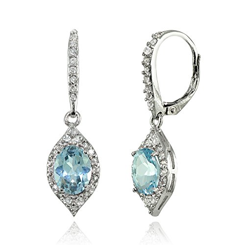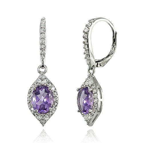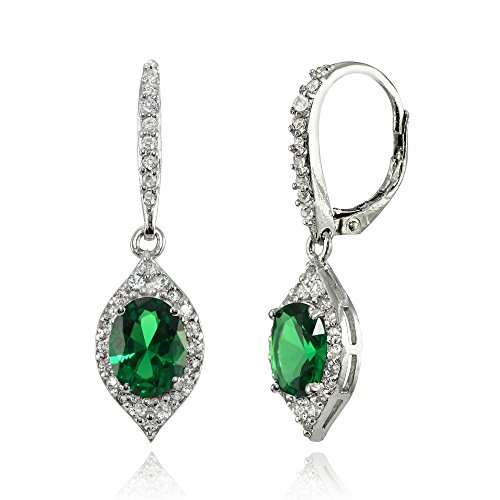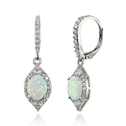 These elegant earrings showcases oval-cut created ruby in a prong setting. The sophisticated design showcases a gorgeous sparkle with a glistening distinguishing white topaz border. This beautiful earrings dangles off leverback closures.Feature