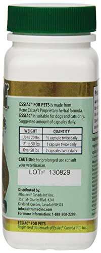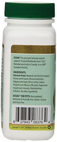 -. Binding : Misc. -. Brand : Essiac -. Feature : Easiest and most convenient way to give ESSIAC to your pet / Immune system support / For dogs or cats -. Label : Essiac -. Manufacturer : Essiac -. MPN : F3TH:ET0006#EssiacPetsHerbal60capsule-P -. PackageQuantity : 1 -. PartNumber : F3TH:ET0006#EssiacPetsHerbal60capsule-P -. ProductGroup : Pet Products -. ProductTypeName : PET_SUPPLIES -. Publisher : Essiac -. Studio : Essiac -. Title : Essiac International Herbal Supplement for Pets, 60 Capsules