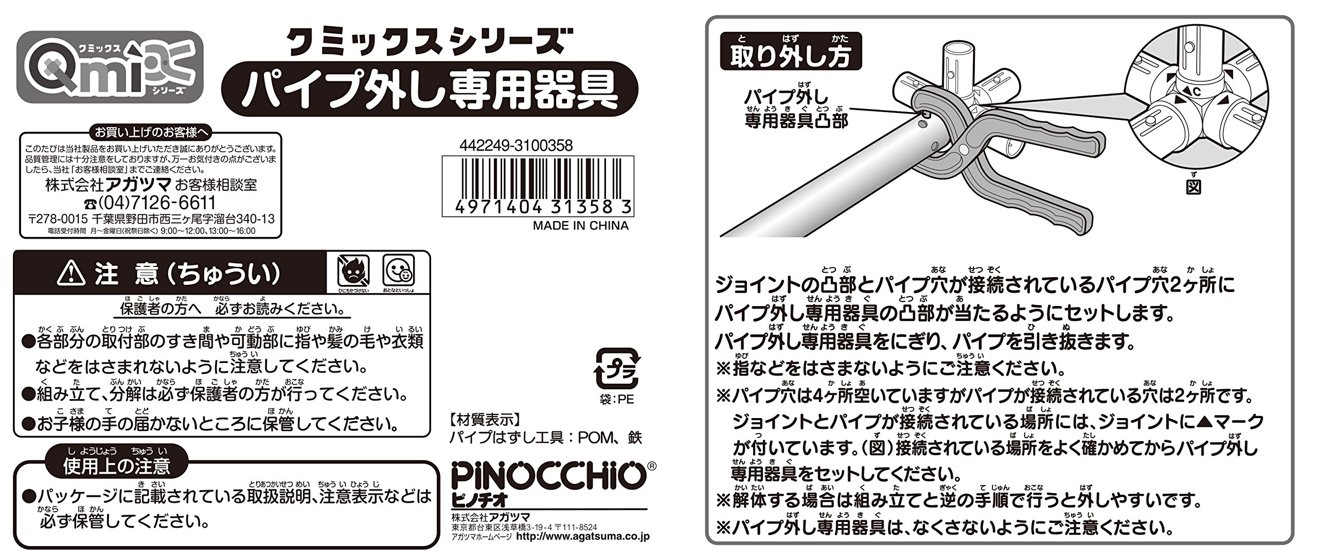 ● "Cumix series" This item is sold separately for "detached pipe exclusive instrument" of play equipment.