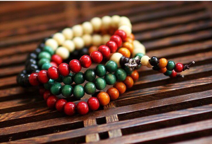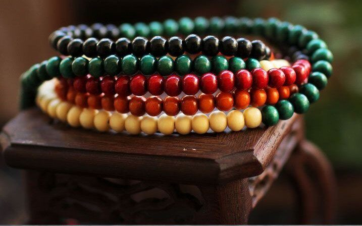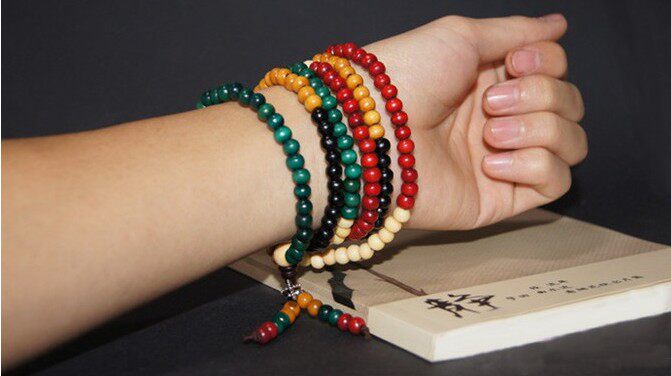 天然五彩檀木佛珠手链佛珠手串男女加长款本命年