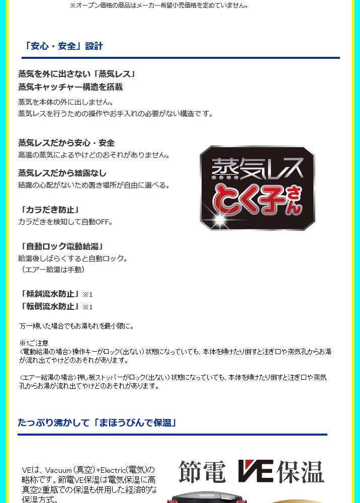 ●商品名称 VE電気まほうびんtokukosan