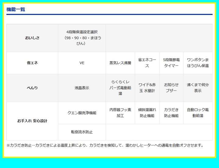 ●たっぷり沸かしてまほうびんで保温「節電VE保温」