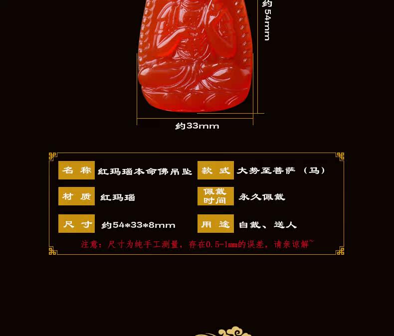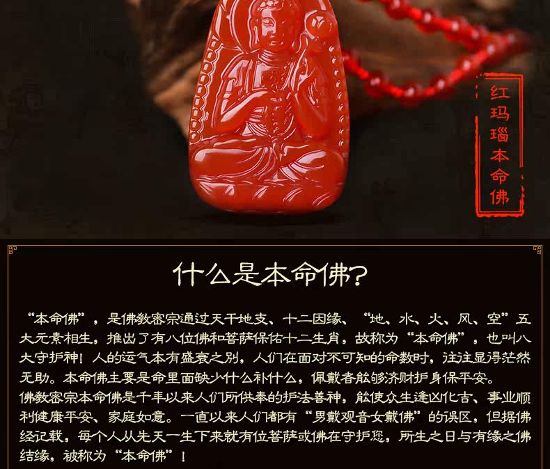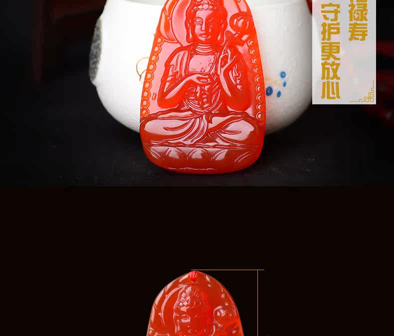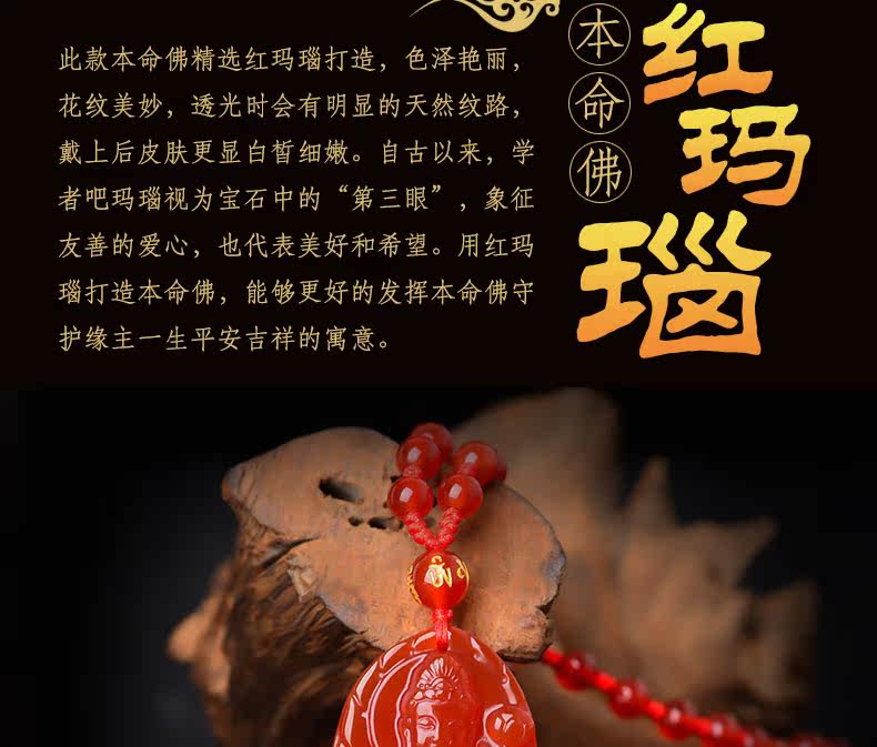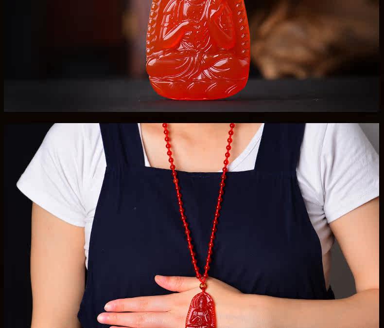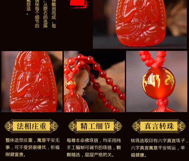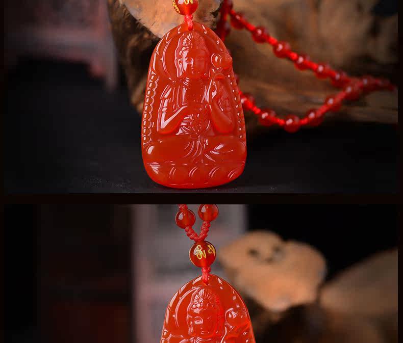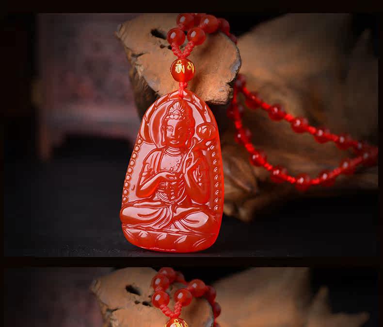 开光 天然红玛瑙大势至菩萨吊坠 生肖属马本命佛男女水晶项链礼物