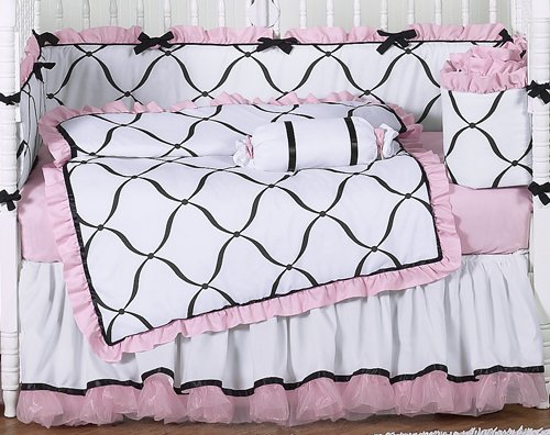 -. Title : Pink, Black and White P.R.Incess Baby Girl Bedding 9pc Crib Set by Sweet Jojo Designs