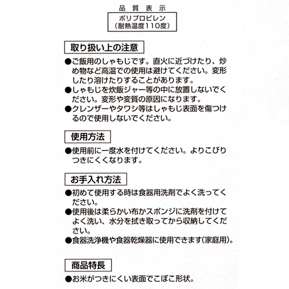 It's very cute, is it a perfect score? Osusumointo · Rice is difficult to attach thanks to embossing processing. - Since the hands are solid, it is easy to grasp. · Because there is a width, it is easy to put on a bowl, easy to mix rice dish etc. Minus point · Because of the shape of the hand, it is difficult if you do not get accustomed to beautifully renting little remaining rice from the rice cooker by all means.