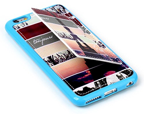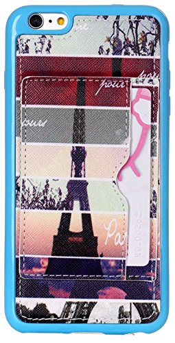 iPhone 6 Plus Cover,iPhone 6S Plus Case AIYZE Blue TPU Back Protective Cell Phone Cases + Stand + Credit Card Slots Holder Premium PU Leather Multi-functional (Paris Tower)